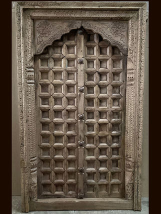Antique handcrafted wooden doors, windows and gates shutters from India. These pieces feature traditional carvings and some are decorated with brass or iron ornamentation. All the items shown below are in stock. Dimensions in centimetres width x depth x height. All prices include VAT.